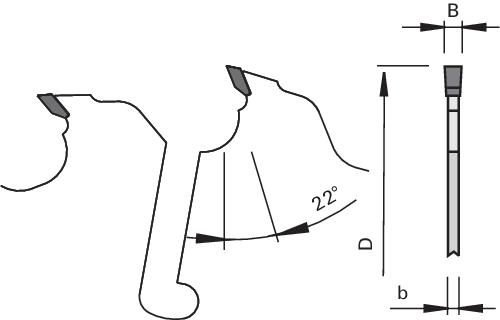 - Tooth configuration: flat tooth "F"